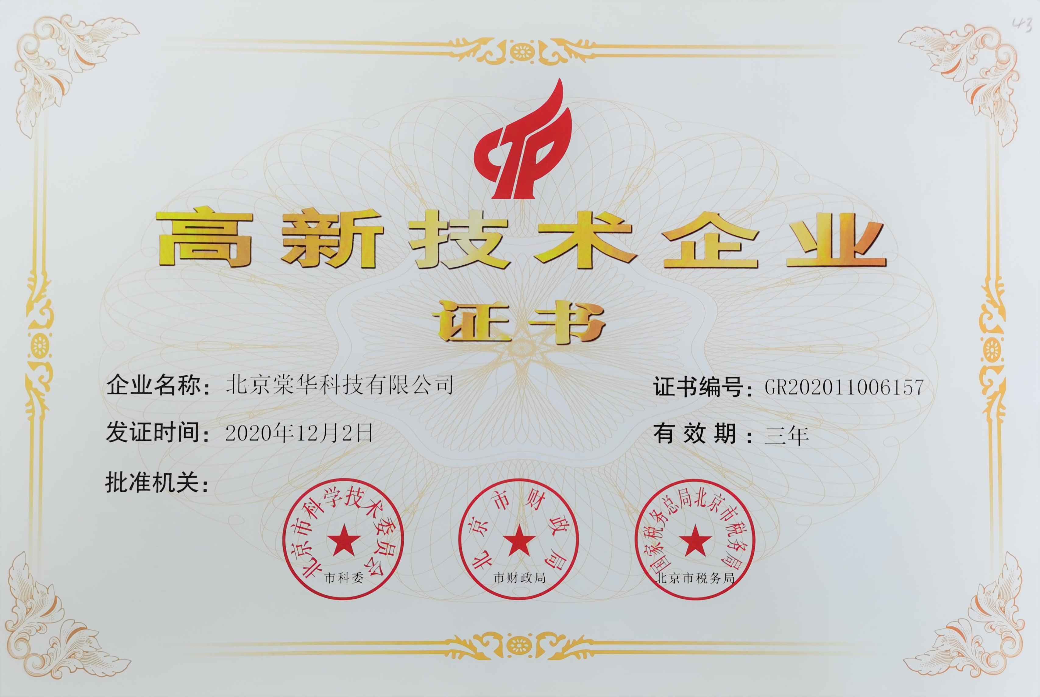 2020年12月,我公司顺利通过高新技术企业认定,并荣获高新技术企业证书。这既是我公司获得的重要荣誉,也是对我们工作的认可和激励。